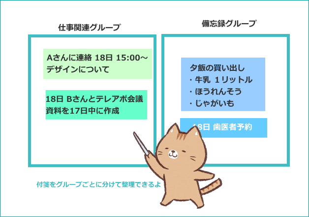 グループ分けもできるので、付箋の用途に合わせてグループを作って整理することができます。